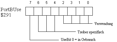 Schließlich muß in der globalen Betriebssystemvariablen PortUsePtr (Abb. B.5.16) der Wert $FF gesetzt werden[55]. Dadurch wird signalisiert, daß der .MPP-Treiber geschlossen wurde und bei einer erneuten Verwendung von AppleTalk zuerst geöffnet werden muß, damit der SCC wieder für Standard-AppleTalk initialisiert ist.