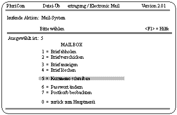 Abb. 5.1.2: Das Mailbox-Menü und seine Funktionen