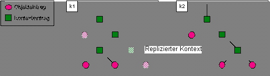 Die Plazierung replizierter Namenseinträge im Verwalternetz erfolgt ausschließlich entlang des Pfades path(n):= k0,…,kprim(n) von der Wurzel der Verwalterhierarchie zum primären Namensverwalter und ist nicht syntaxorientiert. Ähnlich der syntaxgesteuerten Plazierung administrativer Namenseinträge werden replizierte Namenseinträge zu Kontexten zusammengefaßt. Hierdurch wird eine erhebliche Reduzierung der replizierten Namenseinträge in den Namensverwaltern erreicht. Allerdings können hierbei dieselben replizierten Kontexte auf verschiedenen Pfaden im Verwalternetz entstehen, so daß die Navigation anhand replizierter Kontexteinträge nicht notwendigerweise eindeutig ist.