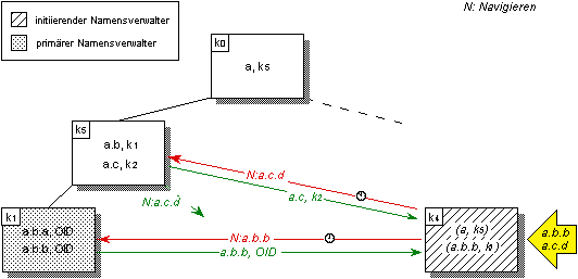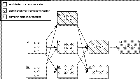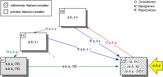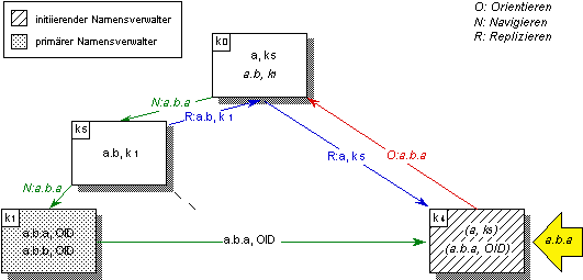 Abbildung 5.8: Beispiel für die Namensauflösung bei Replikation von Namensverwaltern